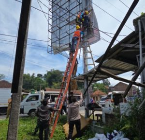 Namun nahas, baliho yang dipasang korban menyentuh kabel listrik bertegangan, sehingga korban langsung tersengat dan sempat tergantung dalam kondisi terikat tali di atas papan tersebut.